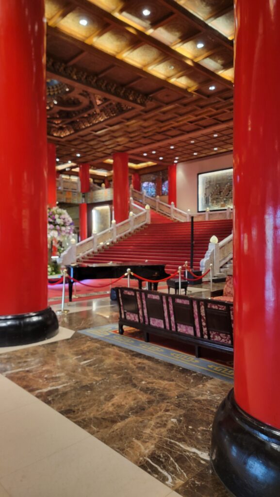 After getting into Taipei it was a quick taxi ride to our hotel. I used Uber the whole time I was in taipei and it worked exceptionally well. I am glad I didnt delete that app from my phone when I left the USA. Our day of travel was nearing completion when we arrived at our hotel. I chose The Grand Hotel. I know, pretty fancy place right? But I feel like if you are going to travel and experience places a nice hotel cant hurt. Plus, my wife looks good in nice places. And I am happy to take her picture. I also like history and architecture so The Grand Hotel was the best option I think.
